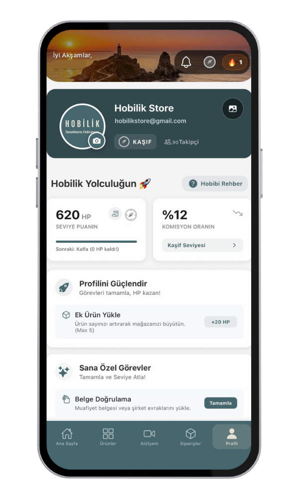 Hobilik dünyasında sana özel hazırlanan görevleri tamamlayarak HP (Hobilik Puanı) kazanabilir ve seviye atlayabilirsin. 'Kaşif' olarak başladığın bu yolda, 'Duayen' mertebesine yükseldikçe hizmet bedelini %5’e kadar düşür; sen zirveye tırmandıkça kazancın daha da değerlensin!